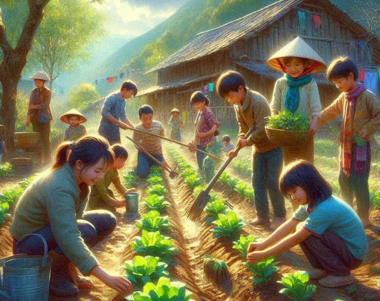In a remote village, a group of volunteers planted a garden with the local children. For Mai, a 10-year-old who lost both parents, it became more than just vegetables—it was a symbol of care and growth.